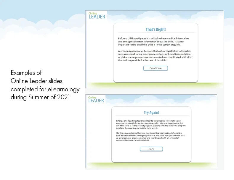 During my summer at eLearnology, my initial task was to create 50+ slides for Online Leader, a "Camp Management Software for Leadership Development"